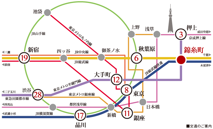 ※所要時間は平日・日中時のもので乗換・待ち時間は含まれません。また、時間帯により多少ことなります。※[ ]内は通勤時の所要時間です。