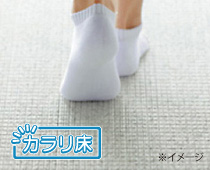- すべりにくくカビの発生を抑えるカラリ床を採用。タテヨコに規則正しく刻まれたパターンが、表面の水を誘導します。